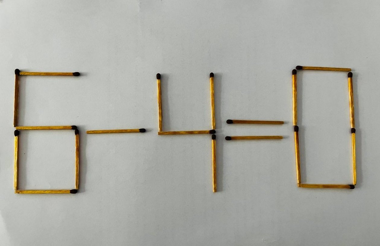 Посмотрите на неверное равенство, выложенное спичками: 6-4=0. Ваша задача — переставить всего две спички так, чтобы пример стал верным. Звучит просто? Но есть важное условие, постарайтесь найти решение самостоятельно, не прибегая к помощи нейросетей или поиска в интернете. И еще одно, вам нужно уложиться в 30 секунд. Время пошло!