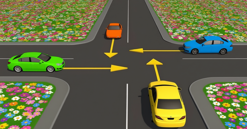 Подобные ситуации редко встречаются в реальной жизни. Но каждый водитель должен помнить: когда нет однозначного приоритета, нужно проявить взаимное уважение. Рекомендуется установить зрительный контакт с другими участниками движения и договориться о порядке проезда жестами или сигналами.