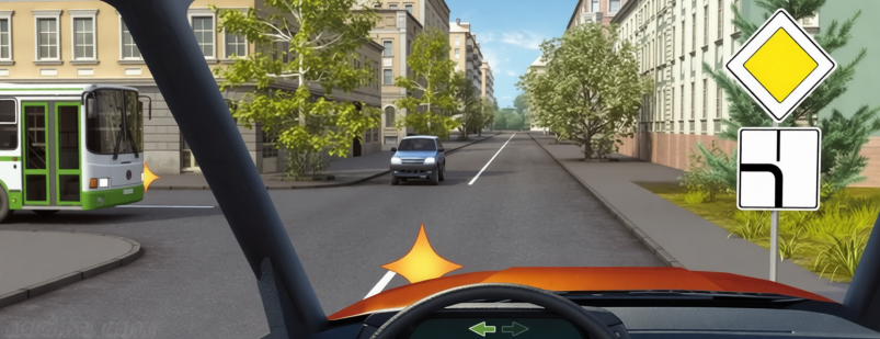 Попробуйте решить задачку, которую регулярно заваливают на автоэкзаменах. Она кажется простой, но хитрый знак меняет все правила приоритета. Представьте, что вы подъезжаете к перекрёстку по главной дороге и собираетесь повернуть налево. Справа по второстепенной приближается легковой автомобиль, а слева, тоже по главной, — автобус, который планирует ехать прямо.