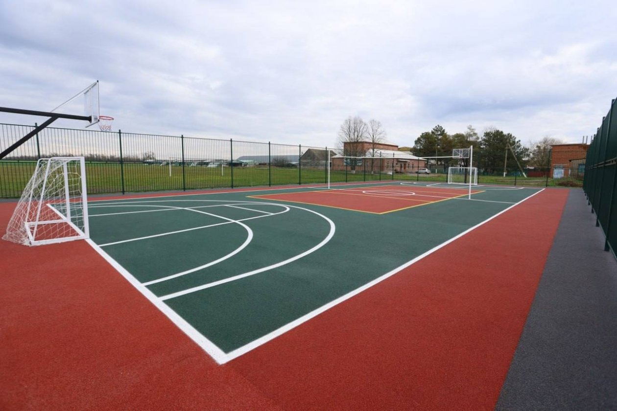 В селе Новом Брюховецкого района появилась универсальная спортивная площадка с травмобезопасным покрытием. На ней оборудовано поле для мини-футбола, волейбола, баскетбола и стритбола, а также установлен современный воркаут-комплекс с уличными тренажёрами.