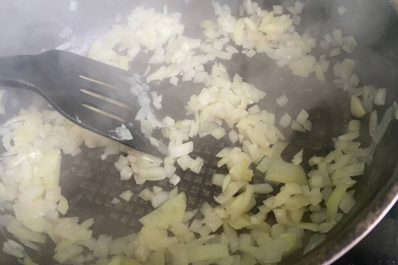- Затем посыпьте содой — примерно 0,5 ч.л. на 900 г лука.