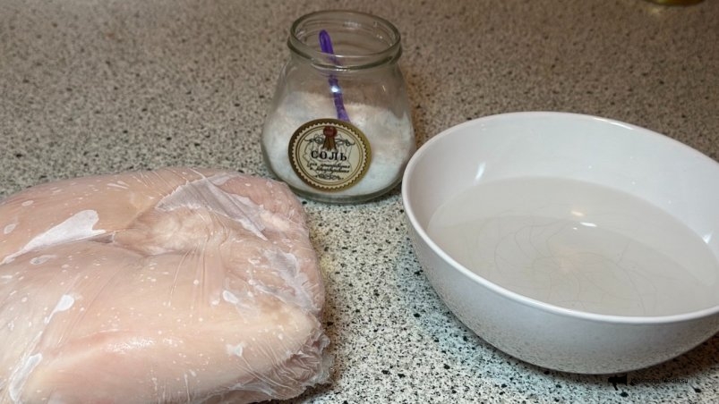 В глубокую емкость налейте воду комнатной температуры (около 25–30 градусов), ни в коем случае не горячую. Добавьте две столовые ложки обычной соли и размешайте ее до полного растворения. Если мясо в вакуумной упаковке, все отлично. Если нет, положите его в плотный пакет, выпустив лишний воздух. Так соль не вытянет из мяса сок и оно не станет слишком соленым. Поместите пакет с мясом в соленую воду и придавите его сверху небольшим грузом, чтобы мясо было полностью в воде. Примерно через 10–12 минут мясо станет мягким.