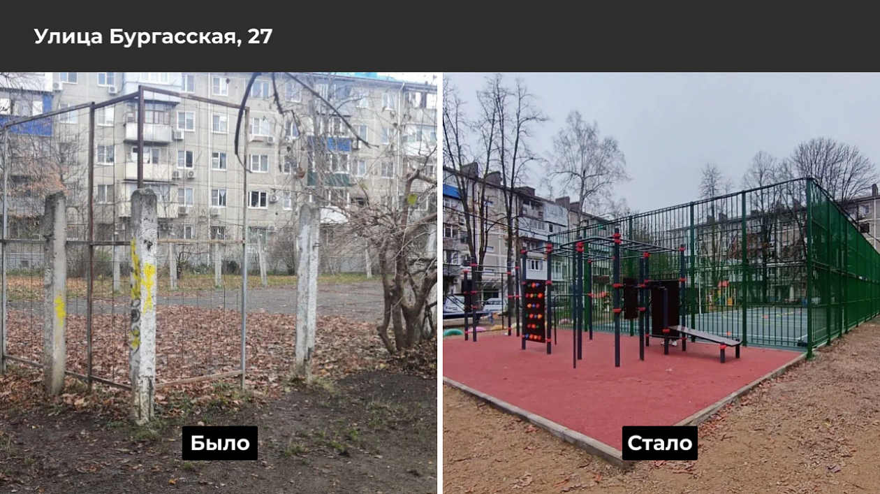Среди городских проектов — новые спортивные площадки в посёлке Победитель и на улице Бургасской, а также воркаут-зона в посёлке Лорис. В парке "Солнечный Остров" обновили покрытие центральной аллеи, на Калининском бульваре и у школы №71 уложили тротуарную плитку. Кроме того, отремонтированы пешеходные зоны на улицах Степной и Железнодорожной в посёлке Индустриальном