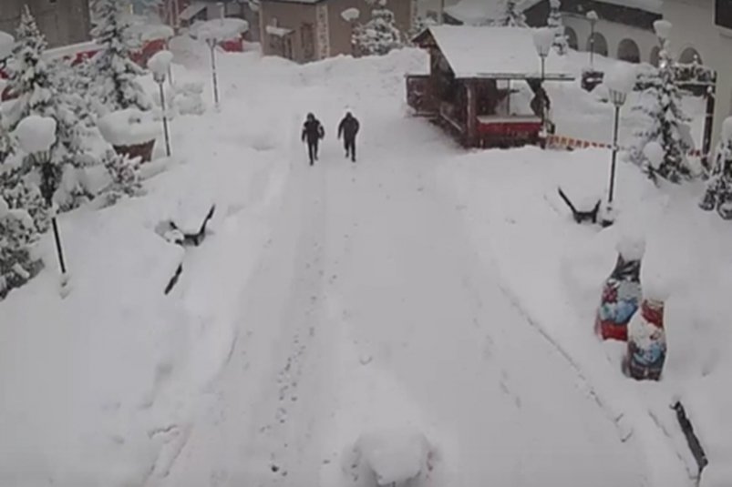 На средней высоте в 1600 метров снежный покров достиг 210 сантиметров. Здесь также продолжается ливневый снег, но видимость несколько лучше и составляет до 200 метров. В Олимпийской деревне на высоте 1100 метров высота сугробов составляет 135 сантиметров.