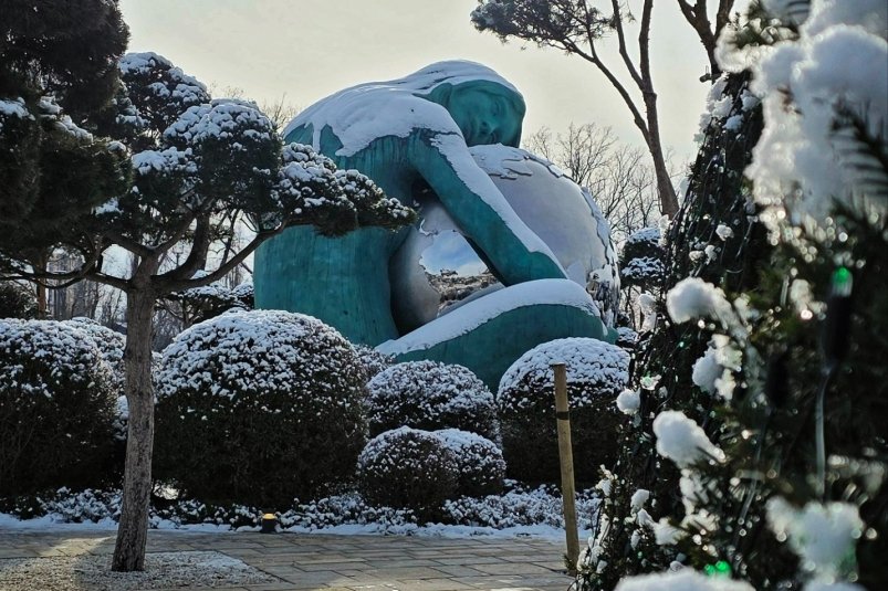 KrasnodarMedia, 3 января. В парке Галицкого в Краснодаре появился новый масштабный арт-объект, мгновенно ставший популярным местом для фотографий и дискуссий. Скульптура под названием "Гайя" изображает женскую фигуру, которая в сидячей позе бережно обнимает нашу планету.