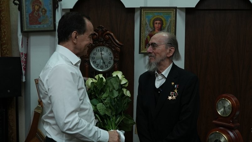 "Уважаемый Виктор Гаврилович, — обратился со сцены Вениамин Кондратьев, — любовь зала, любовь народа — она воочию, к Вам, к каждому артисту, стоящему на этой сцене. Это талантливейший коллектив. Талантливейший! Каждый уникальный! Эти самоцветы собрали Вы, Виктор Гаврилович, значит Вы талантливейший из талантливых. Вас Господь этим наградил. У меня есть возможность от всех нас, от Кубани шести с половиной миллионной, сказать Вам за это Спасибо!"