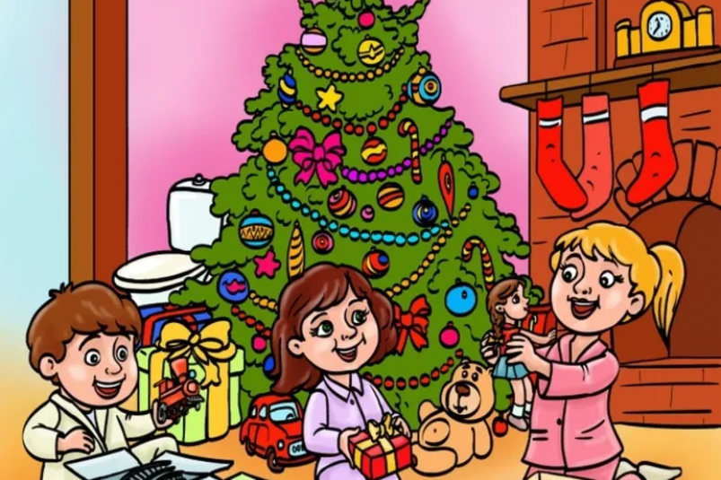 В случае, если вы не обнаружили ничего необычного, предлагаем ознакомиться с решением ниже. Как вы можете видеть, в интерьер гостиной с наряженной елкой каким-то чудесным образом попал унитаз.