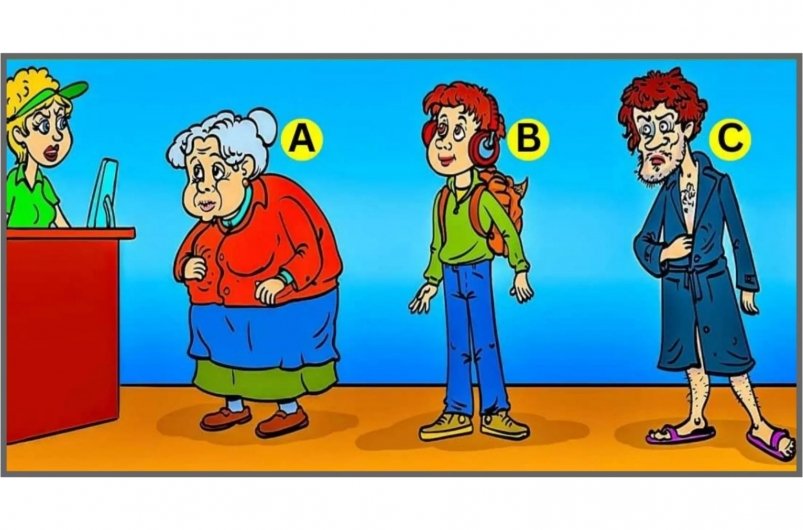 Взгляните на изображение. Что вы видите? В очереди к кассе находятся три человека, однако лишь один из них совершил кражу чипсов. Попробуйте определить личность вора. Ответ необходимо предоставить в течение 5 секунд, поэтому действуйте оперативно.