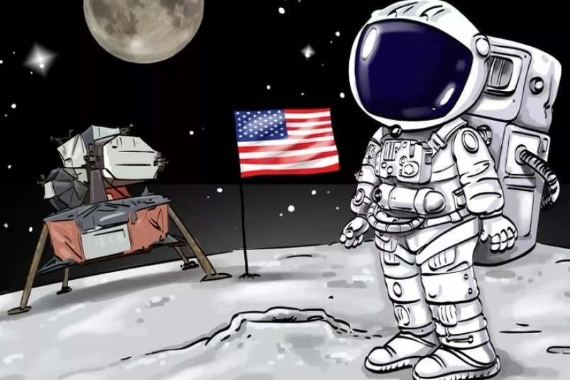 Ниже представлен ответ для тех, кто не смог обнаружить аномалию. На чём стоит астронавт? Очевидно, это момент покорения Луны — он находится непосредственно на её поверхности. Однако, как видно, на горизонте присутствует вторая Луна, что, безусловно, невозможно.