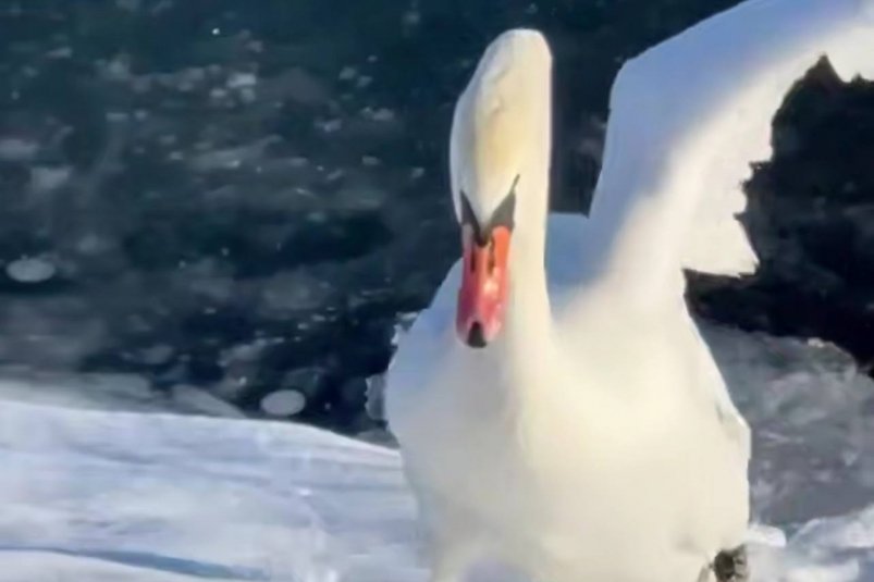 Местные жители смогли аккуратно освободить лебедя от лески. Птица вела себя спокойно, позволяла проводить все необходимые манипуляции и даже реагировала на жесты людей.