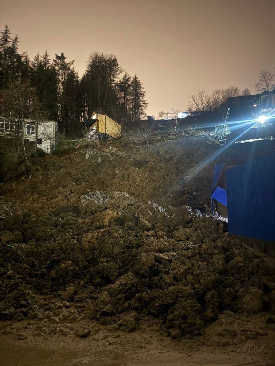 По данным очевидцев, в настоящее время наблюдается активное движение значительной массы грунта. Ситуация продолжает развиваться, сохраняется риск дальнейшего схода.