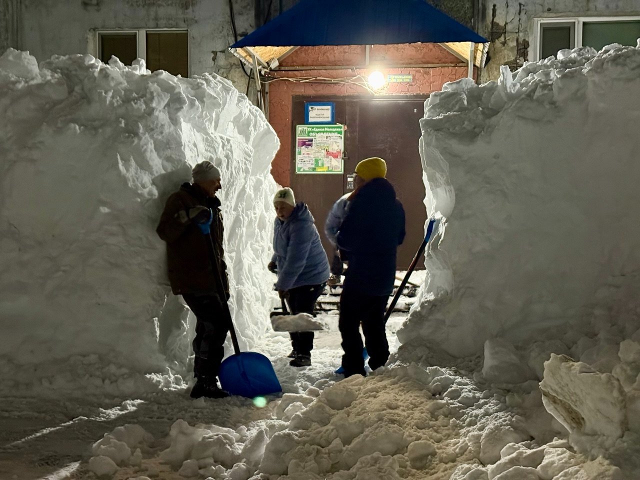 Тут уж выбирать не приходится — если кто-то готов чистить в это время, нужно одеваться потеплее, брать все лопаты и идти помогать.