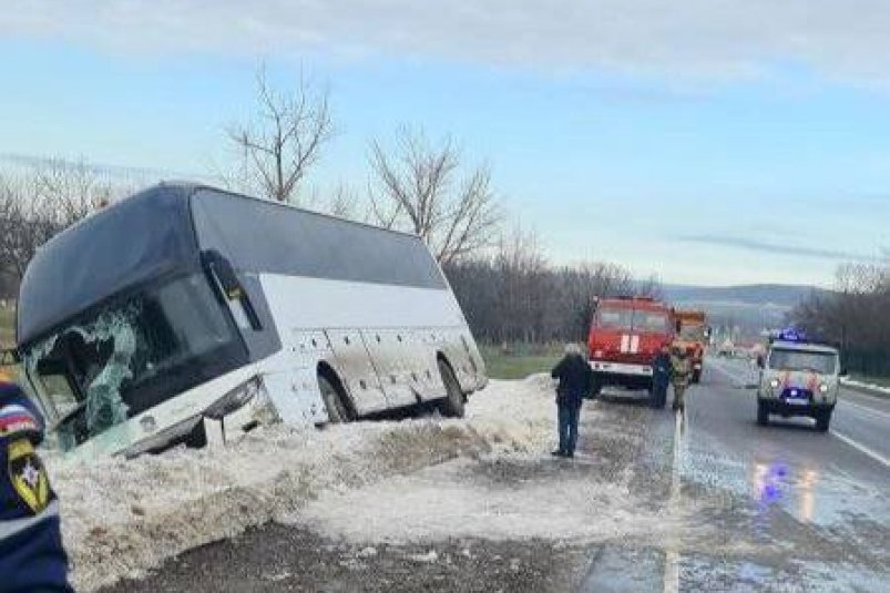 Автобус с 22 пассажирами слетел в кювет под Новороссийском