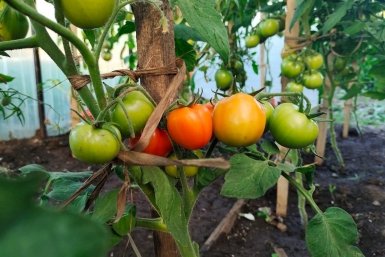 "Кусты очень высокие, под 2 метра. Подвязывать обязательно, растение выстоять с плодами не может", — пишет один из огородников.