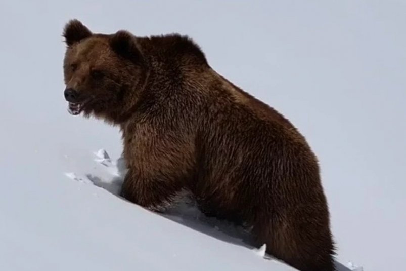 В горах Сочи посреди зимы заметили очнувшегося от зимней спячки медведя