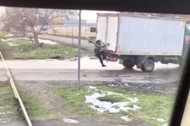 KrasnodarMedia, 30 января. Полиция Краснодара разыскивает подростков-зацеперов, бросавших камни в трамвай. В соцсетях появились видео, на которых мальчишки сначала бросали в окна снежки и камни, а затем цеплялись за заднюю часть транспорта и проехались.