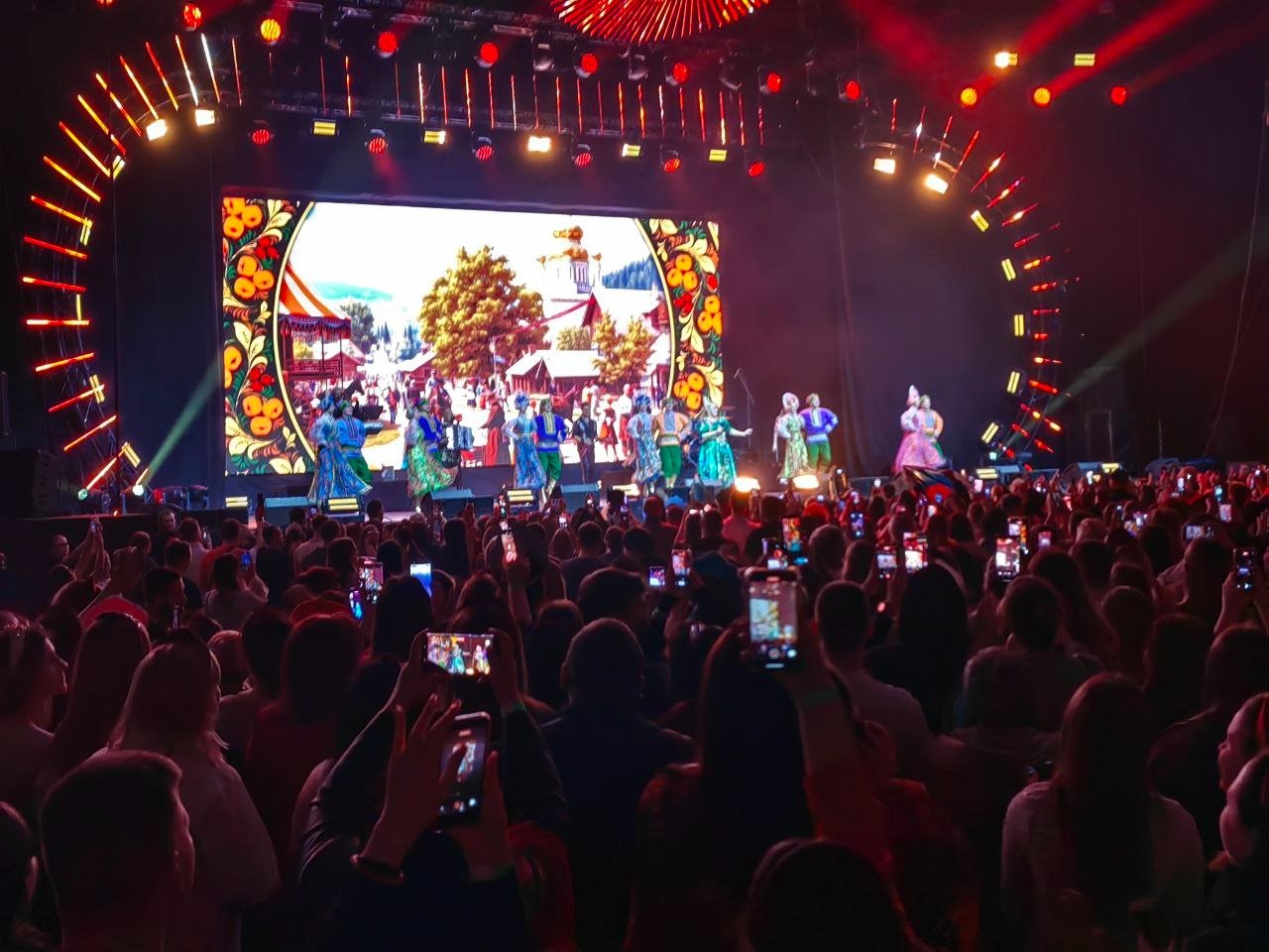 Артистка несколько раз исполнила "Течет ручей" (6+), "Плывет веночек" (6+) и другие популярные песни. Зрители бурно поддерживали вокалистов. Когда прозвучали первые ноты песни "Широка река" (6+), люди, сидящие на местах, тоже встали и начали подпевать. В завершении исполнители попросили включить все фонарики. Полный зал светящихся огней напоминал звездное небо.
