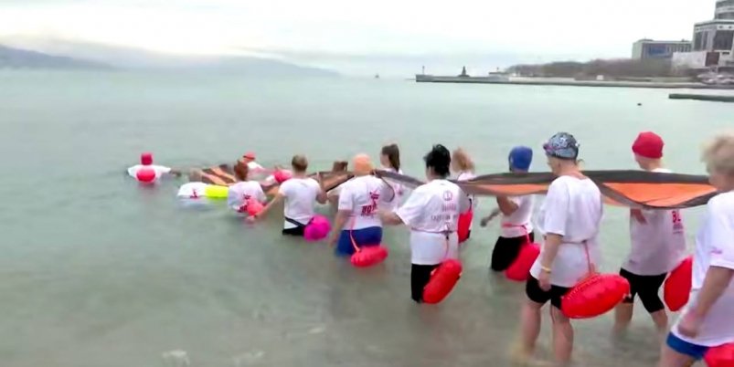 Участники почтили память героев, повторив их путь по холодным водам бухты. Кульминацией стала церемония погружения в море 12-метровой георгиевской ленты — символа живой памяти и связи поколений.