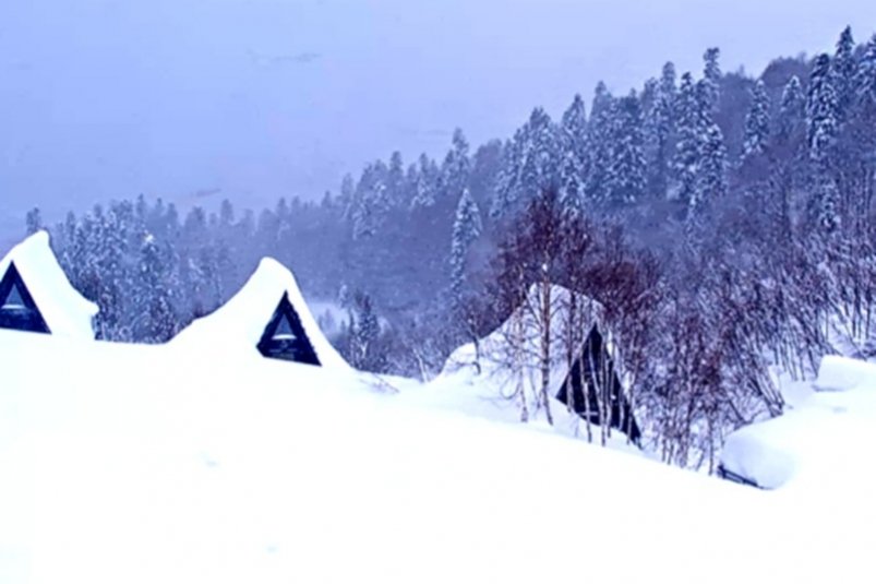 На промежуточной станции на высоте 1600 метров осадки уже прекратились, что обеспечило отличную видимость до 20 километров. Снежный покров на этой отметке также существенно вырос и теперь достигает 220 сантиметров. В Олимпийской деревне на высоте 1100 метров максимальная высота сугробов составляет 120 сантиметров при температуре воздуха +5 градусов. На более низкой отметке в 940 метров снега заметно меньше — около 90 сантиметров.