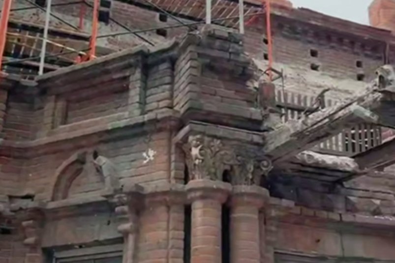 Все внешние работы ведутся с максимальным вниманием к исторической достоверности. Реставраторы опираются на архивные чертежи и фотографии начала XX века. Особое значение придаётся работе с кирпичом: каждый сохранившийся элемент представляет большую ценность. К сожалению, около 60% оригинального кирпича оказалось утрачено и подлежит замене. Для этой цели используется не обычный, а специальный реставрационный кирпич, из которого вручную вырезают колонны и фигурные детали кладки. Оставшиеся 40% подлинного материала тщательно очищаются от наслоений. Для этой кропотливой работы прямо на стройплощадке организован временный цех.