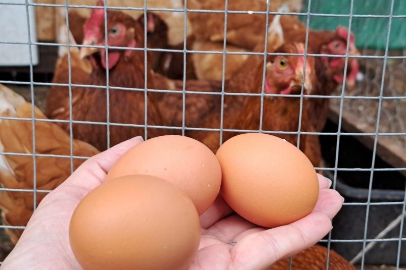 Считаем для шести кур. Теперь у нас не две, а шесть несушек. Значит, за один день все они вместе снесут: