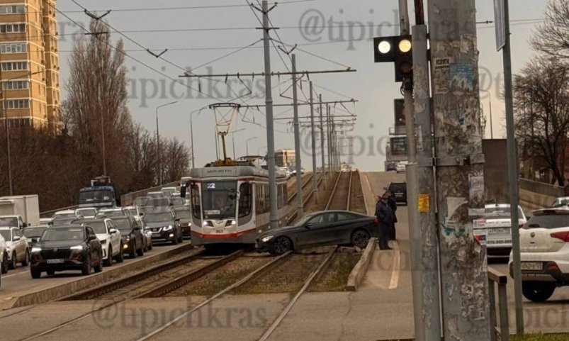 Машина вылетела на трамвайные пути в Краснодаре t.me/tipichkras