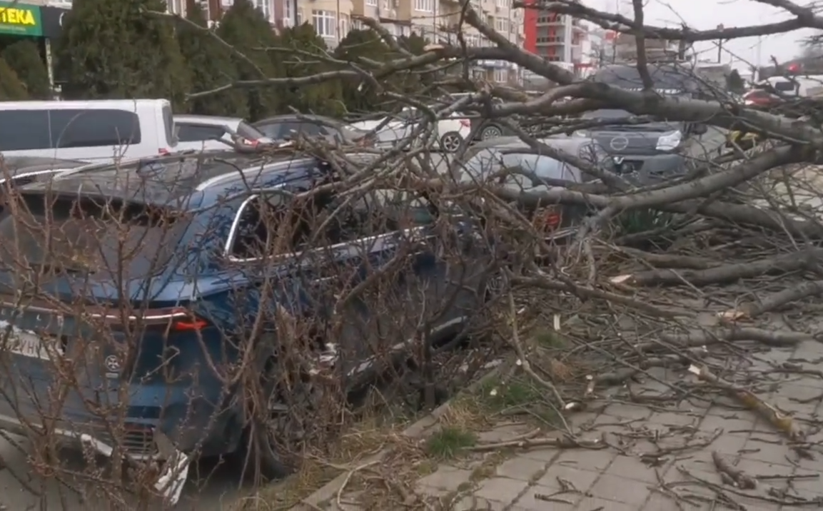 Некоторые анапчане поутру обнаружили свои машины разбитыми. Ветер бушует и в других городах Черноморского побережья и в центральной части края.