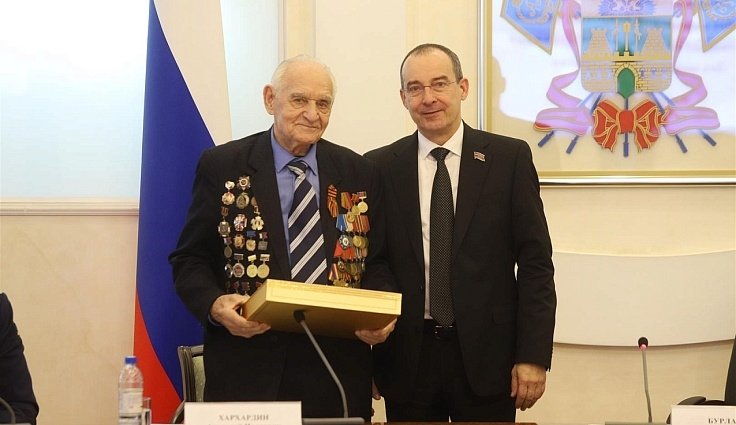 "Сегодняшняя встреча стала доброй традицией. В стенах краевого парламента мы чествуем ветеранов, тех, кто бывал в "горячих точках", вспоминаем отдавших жизнь за боевых товарищей и Отечество. В числе приглашенных — участник Великой Отечественной войны Анатолий Иванович Хархардин, чья биография — пример доблестного служения Родине", — обратился к собравшимся Юрий Бурлачко.