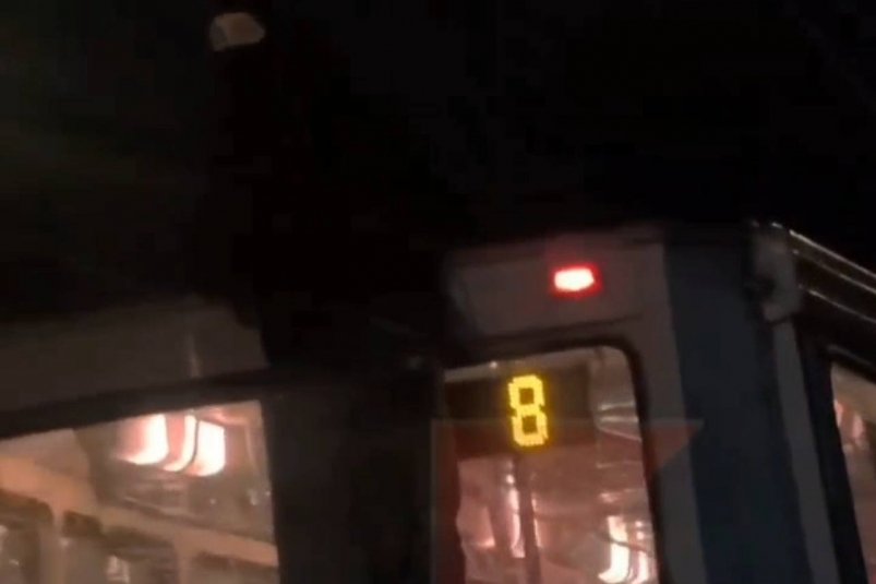 На кадрах ребенок запрыгнул снаружи на вагон и ехал по маршруту № 8, держась за лестницу. На мальчике была маска.