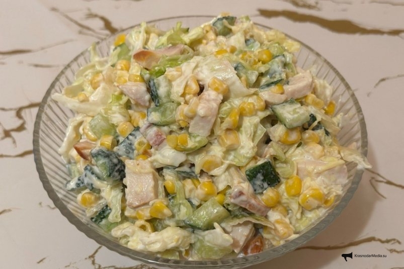- Заправка: смесь нежирной сметаны (или густого йогурта) с каплей аджики и пропущенным через пресс чесноком.