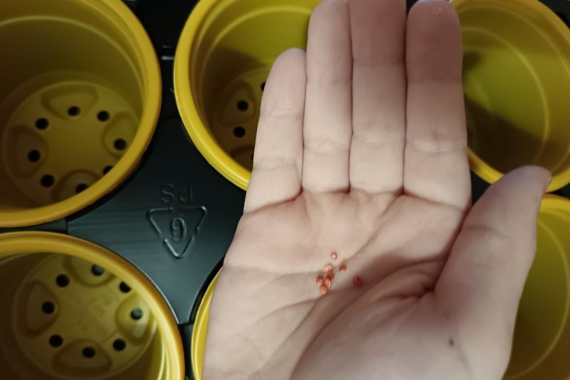 Через 2 часа семена готовы к посадке. Промывать их не нужно — автор просто зачерпывает их ложкой и переносит в стаканчики объёмом 200 мл, заполненные почвобрикетом.