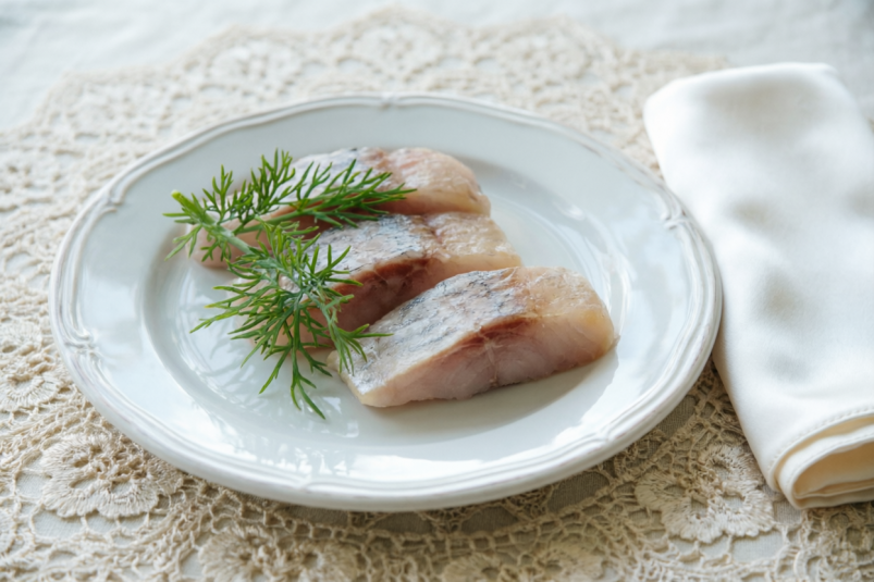 - Разделите сельдь на филе, удалите кости и нарежьте порционными кусочками.