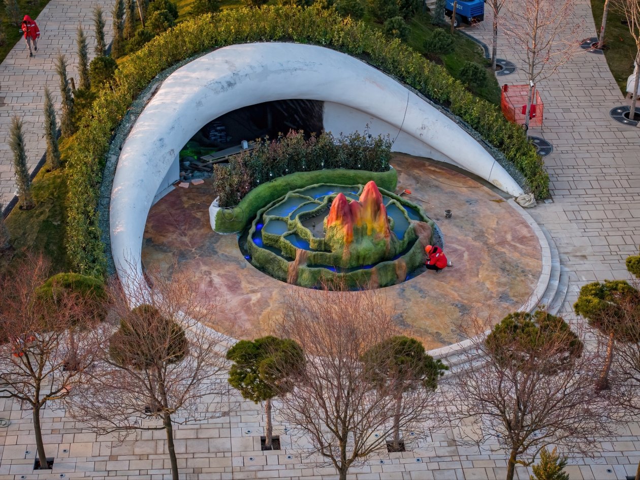 На входе в локацию установили небольшой гейзер, вокруг него уложена декоративная плитка. Официальной информации о назначении нового арт-объекта и сроках его открытия для посещения пока не поступало.
