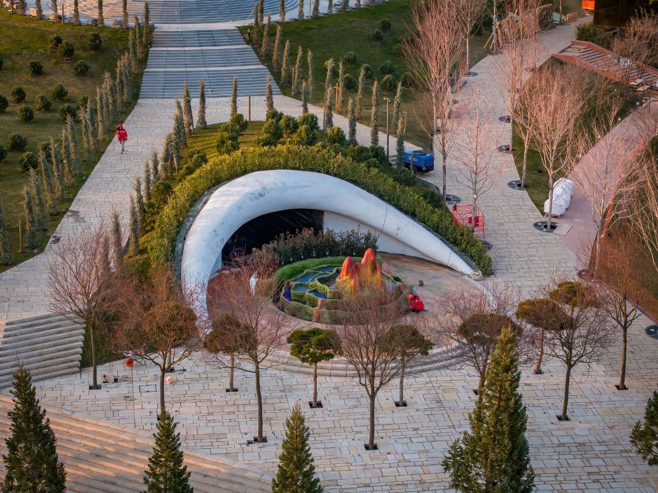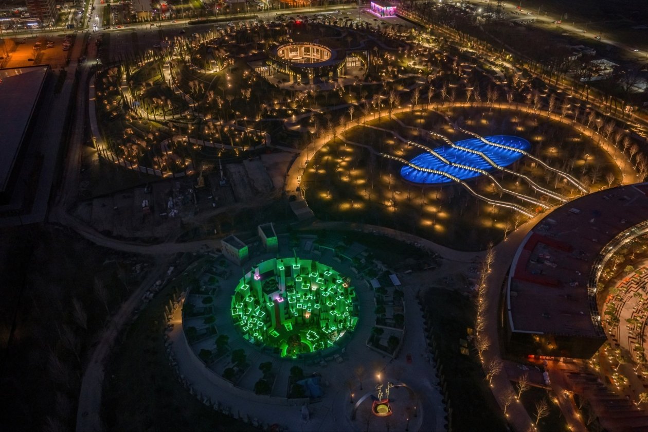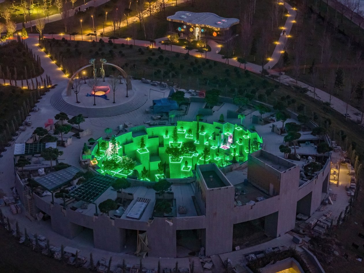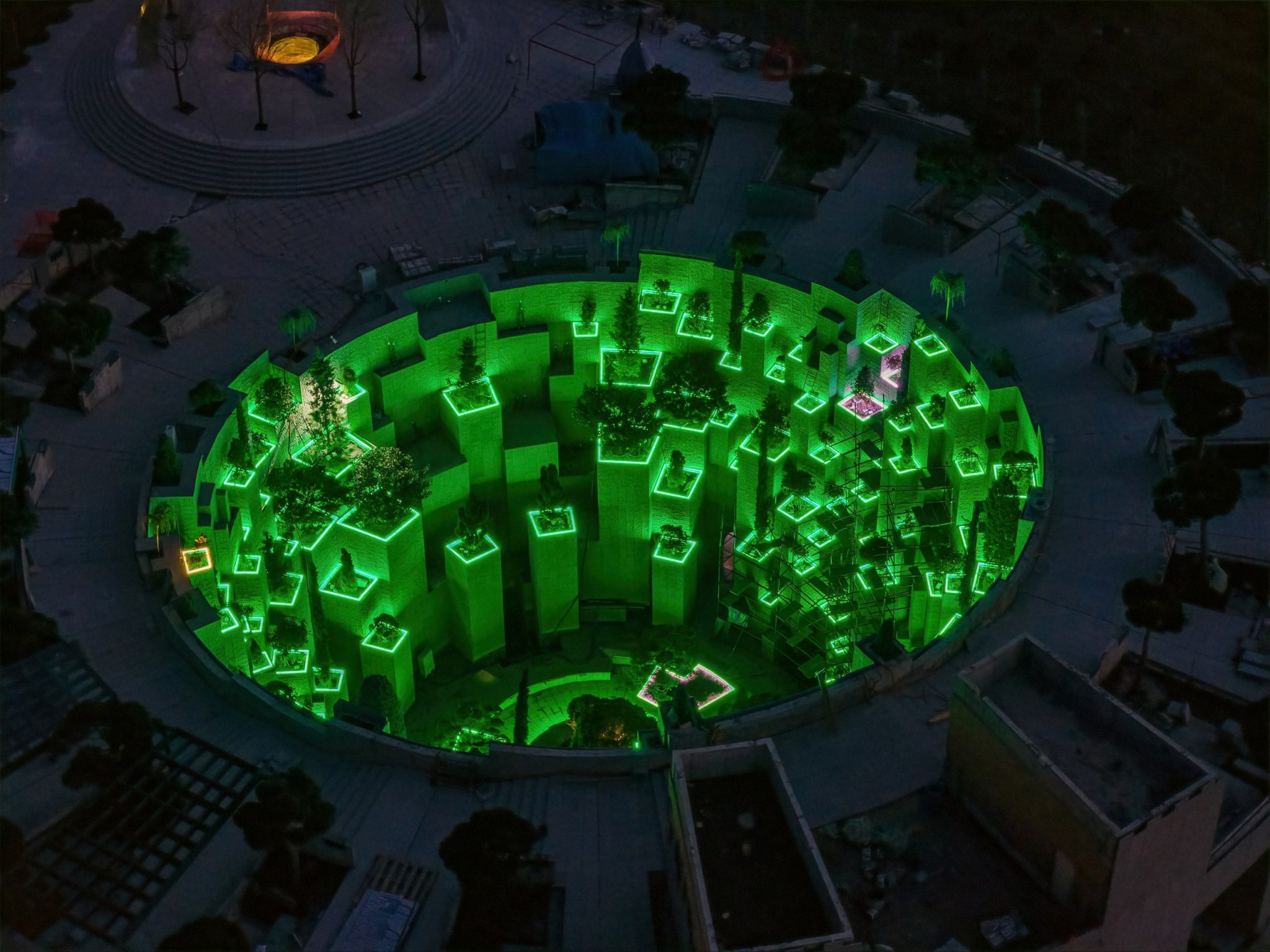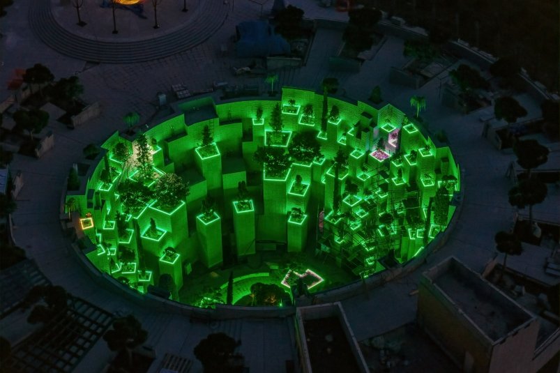 Напомним, новый арт-объект представляет собой масштабный бетонный цилиндр, уходящий глубоко в землю. Внутри сооружения организовано несколько уровней, на стенах и опорных колоннах которых размещены деревья и зеленые насаждения. В узкие прямоугольные конструкции разной высоты, образующие "каменный каньон", вмонтированы десятки ниш с зеленью. На верхних гранях смонтирована подсветка, которая создает особенно эффектную картину в темное время суток.