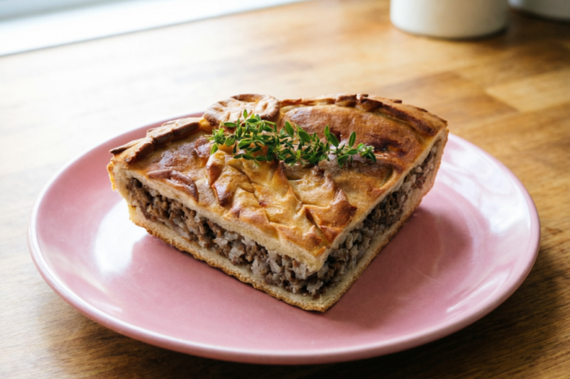 Выпекайте в разогретой до 180C духовке 20–25 минут — до золотистой корочки и устойчивой заливки (не шатается при лёгком покачивании). Сразу после выхода из духовки смажьте верх 1 ст. л. растопленного сливочного масла — пирог заблестит, станет ароматнее и мягче.