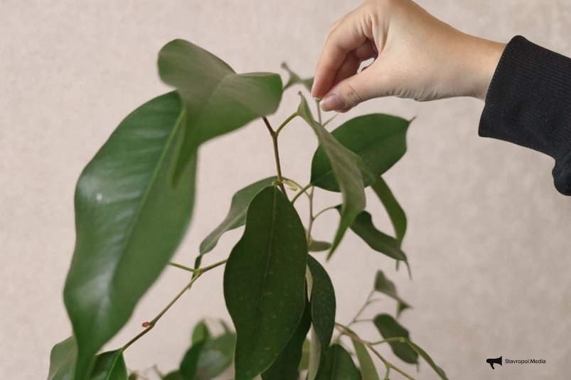 Обрезка — не роскошь, а необходимость. Два раза в год — весной и осенью — удаляют длинные побеги и слабые ветки. Это стимулирует рост боковых побегов, и крона становится густой, пышной. Сок — не беда: это нормальная реакция растения, просто протрите листья салфеткой.