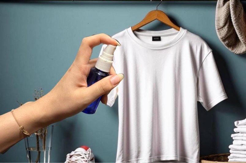 Правила использования домашнего спрея те же, что и для покупного. Одежду лучше повесить на плечики, распылить состав с расстояния 20–25 сантиметров, равномерно проходя по всей поверхности. Не нужно мочить ткань — достаточно лёгкого тумана. После этого вещь оставляют на 5–10 минут в проветриваемом месте, чтобы спирт испарился, а аромат мягко распределился по волокнам.