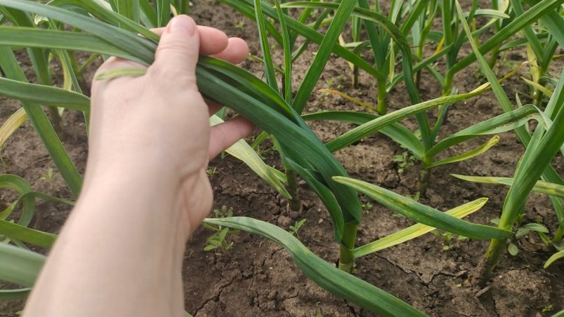 В сухой день осторожно выньте один куст. Разделите землю и присмотритесь. Зрелый чеснок твердый на ощупь, как камень, с плотными тёмными чешуйками — они шуршат и не гнутся. Незрелый — мягкий внутри, с бледной, тонкой "одеждой".