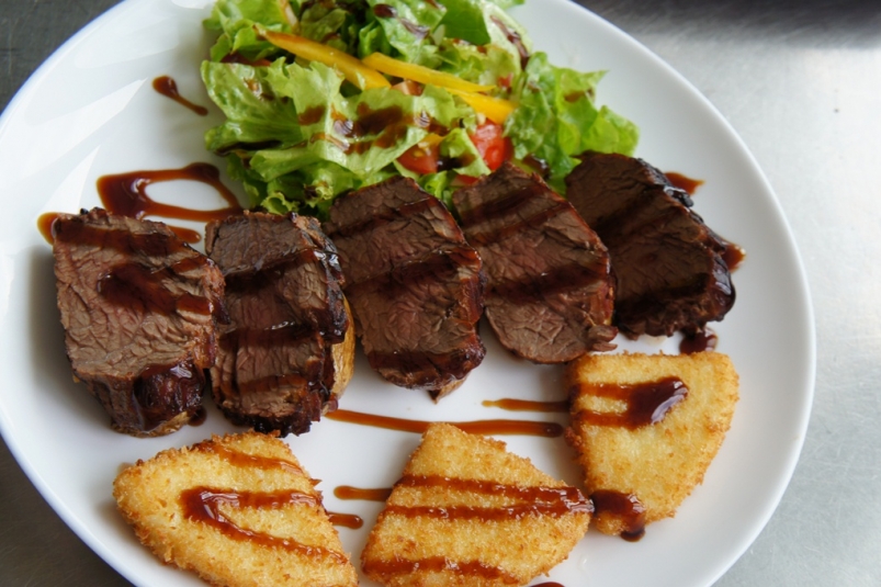 Секретом приготовления нежной и очень сочной телятины поделился с читателями ИА KrasnodarMedia шеф-повар одного из ресторанов (здесь могла бы быть реклама и название ресторана). Изюминка этого блюда – в гарнире. Жареный адыгейский сыр, картофель фри и микс-салат станут прекрасным дополнением к сочному мясу.