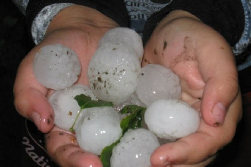 А в станице Ленинградской накануне выпал очень крупный град, который нанес повреждения урожаю на домашних подворьях.