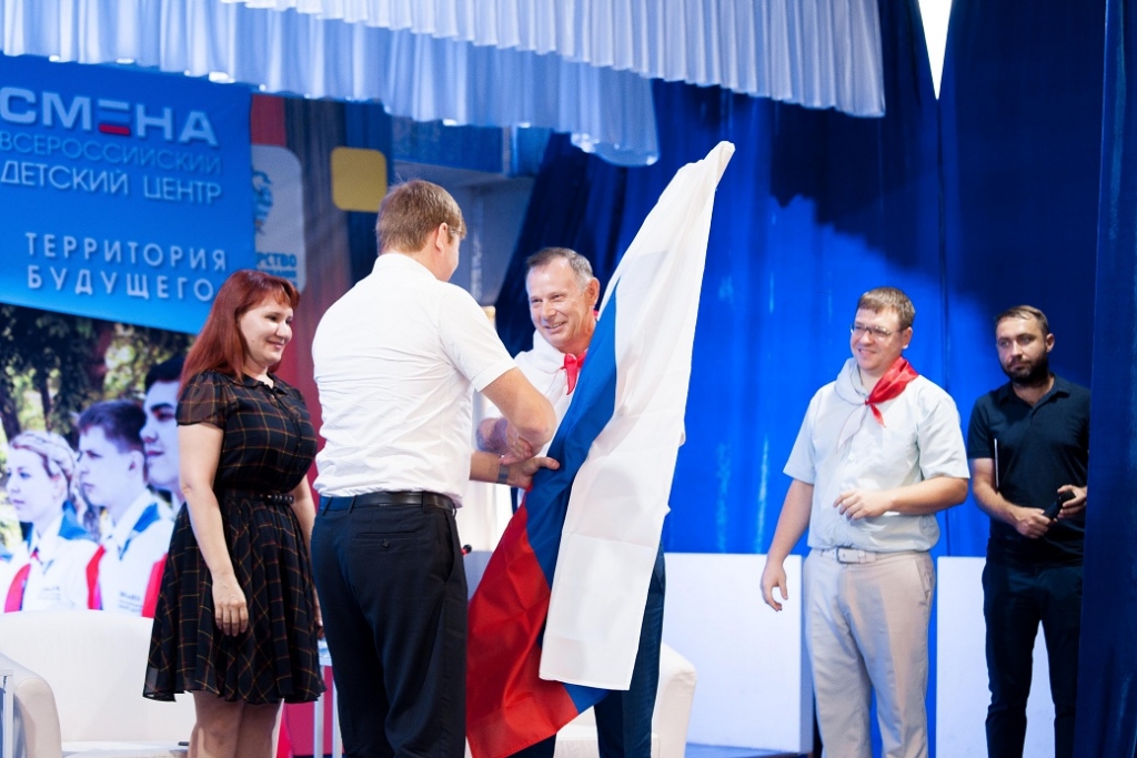 Во Всероссийском оздоровительном центре "Смена" в поселке Сукко города-курорта Анапа делегация Регионального отделения ОНФ собрали в торжественном зале лагеря более 300 детей. Была проведена викторина на знание истории возрождения флага России.