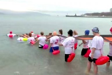 Массовый заплыв с 12-метровой георгиевской лентой засняли в Новороссийске Участниками стали жители из разных городов (ВИДЕО) 1 февраля, 15:09