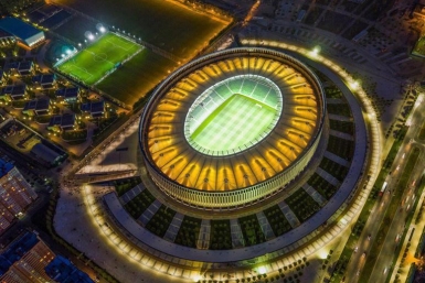 Фото строящегося стадиона ФК "Краснодар" с ночной подсветкой разместил в соцсетях Галицкий