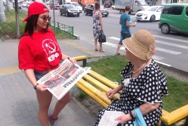 Знойным днем "женский батальон" крайкома раздавал на улицах Новороссийска спецвыпуски партийных газет (ФОТО)