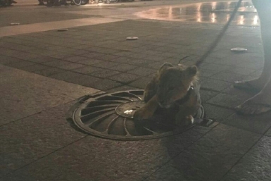 Хищники в городе: маленького львенка выгуливали в Краснодаре возле Театра Драмы