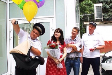 Хеппи энд после ночных гонок; краснодарские ДПСники навестили свою "крестницу" в роддоме