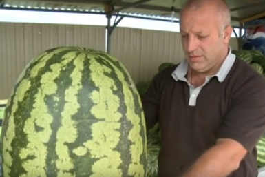 Арбуз-гигант весом 53 кг вырастил фермер из Краснодара