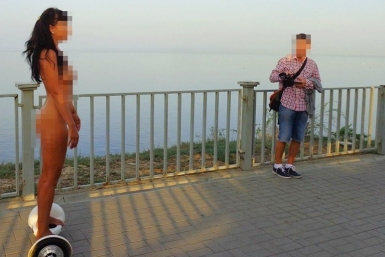 Фотосессия в стиле "ню": голая девушка прокатилась на гироскутере по Анапе