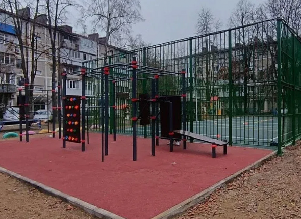 Зону оборудовали для игры в стритбол и волейбол, установили тренажёры для воркаута, а всю территорию покрыли специальным безопасным покрытием и оградили.