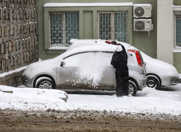 снег, снегопад, непогода, чистка машины